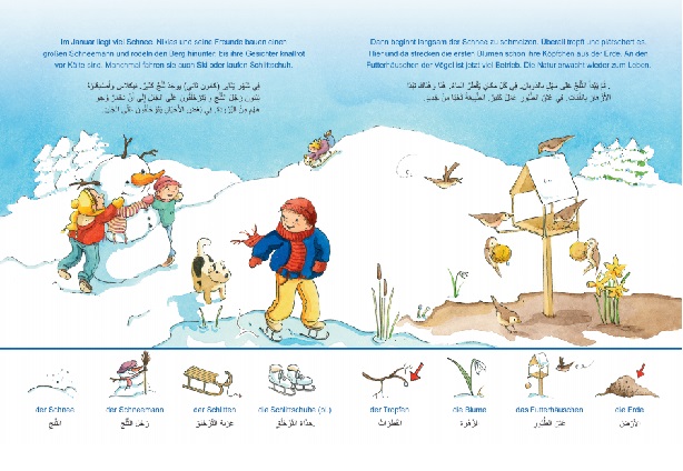 Der siebte Band der Reihe bilibrini – die kleinen Zweisprachigen behandelt das Thema Jahreszeiten und eignet sich ideal für den ersten Einstieg in eine weitere Sprache. Die Wort-Bild-Leiste auf jeder Seite greift einzelne Motive auf und fördert gezielt das Suchen, Finden und Benennen.