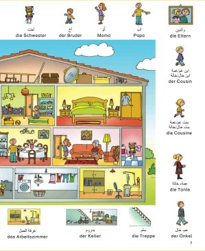 Spielerisch Deutsch lernen mit fröhlichen Wimmelbildern: 28 detaillierte Illustrationen zeigen typische Kinderthemen. So können zu Hause, im Kindergarten und in der Vorschule mit Spaß Deutsch und Arabisch gelernt werden.