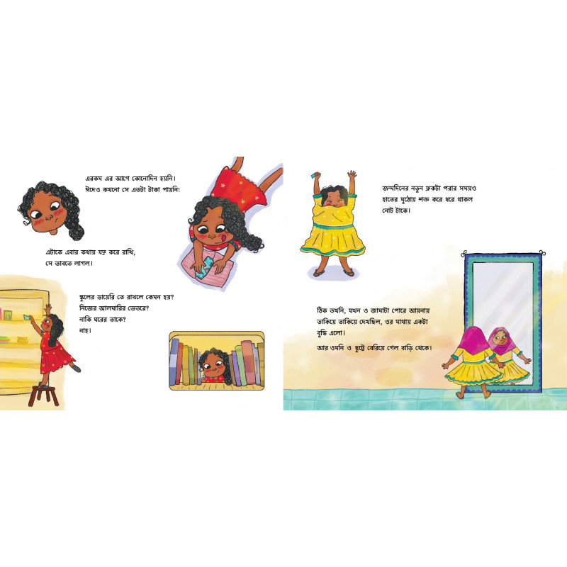 Ilham hat ein Problem. Ihr Papa hat ihr zum Geburtstag einen frischen Fünfzig-Rupien-Schein geschenkt und sie weiß nicht, wo sie ihn sicher aufbewahren soll. Eine Tasche wäre am besten, aber ihr neues Kleid hat keine. Also rennt sie zur Schneiderin Salma Chachi, um sich eine Tasche nähen zu lassen – aber das führt zu einem weiteren Problem.