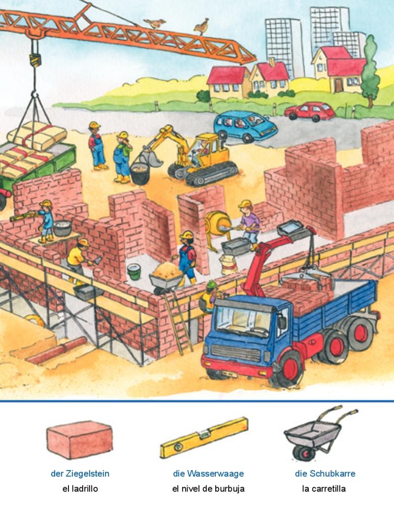 Auf der Baustelle wird gebaggert, gehämmert und gebohrt. Viele Menschen und riesige Baumaschinen sind im Einsatz, bis Sinans neuer Kindergarten endlich fertig ist.